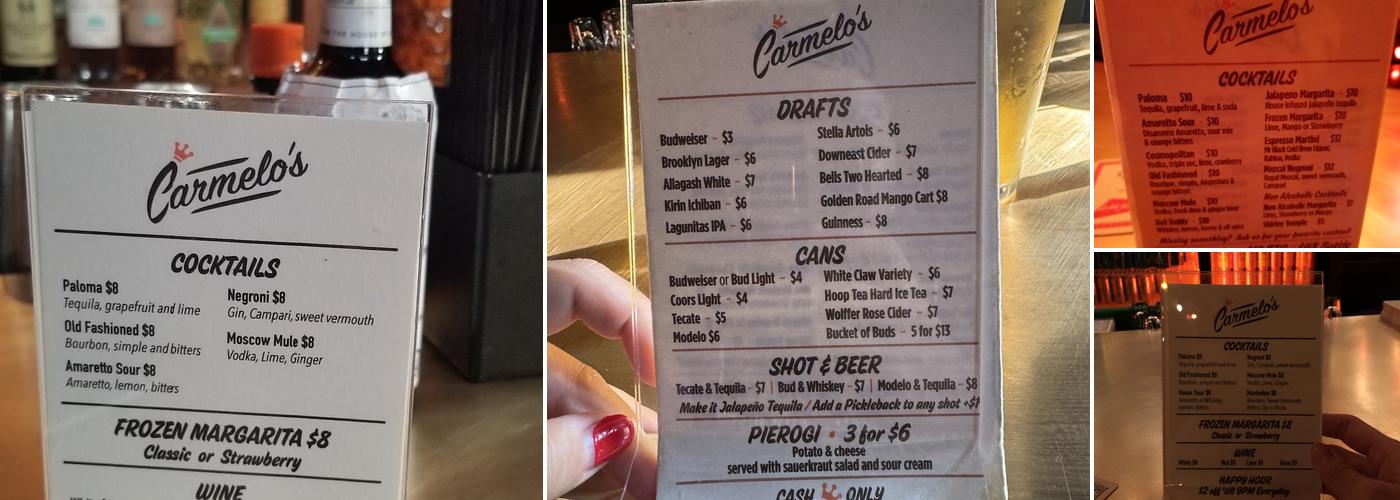 Carmelo's, a popular establishment in Bushwick, is a lively bar that attracts a diverse crowd. The bar has undergone changes, including a revamped layout with a lounge vibe, a selection of natural wines, and a happy hour deal on bottled wine. Customers appreciate the photobooth, the affordable drinks, and the fun atmosphere. The upstairs bar and the clean environment are also highlights, along with the kind hospitality provided by the staff. The bar is known for its great service, and the bartender Wilson is particularly praised for his excellent attitude, music selection, and ability to fulfill customers' thirst needs. The menu features delicious dishes like perogis and quesabirra tacos, with the addition of a unique Dorito-based nachos creation that has been well-received by customers.
