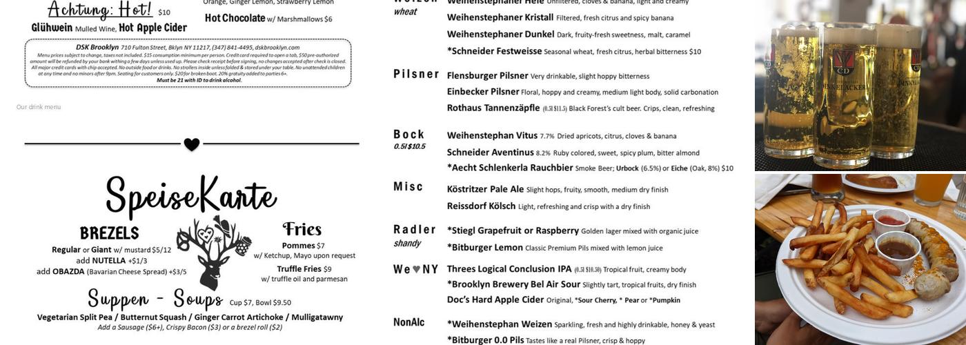 DSK Brooklyn is a popular German-inspired restaurant in the neighborhood, known for its great beer selection and lively atmosphere. The menu features classic German dishes like sausages, including kielbasa, chicken brat, and currywurst, all served in a fun and energetic setting. Regulars and newcomers alike enjoy the outdoor seating, extensive beer list, and engaging trivia nights, making it a go-to spot in Brooklyn. The restaurant also has a large screen for watching sports events and offers a rotating selection of traditional German-style beers, which are fresh and served in their own special glasses. While some dishes, like schnitzel, may not be the best, the overall experience of enjoying the beer and the friendly, welcoming staff makes it a favorite among locals. The restaurant's owner pays personal attention to customers, and its support for long-term staff during the pandemic has helped build its strong community reputation. Despite some concerns about seating comfort and the time it takes to get food, the outdoor seating and draft Paulener beer are considered positives. Overall, DSK Brooklyn remains a lively spot that feels like a true German beer garden, loved for its vibrant atmosphere and good beer.