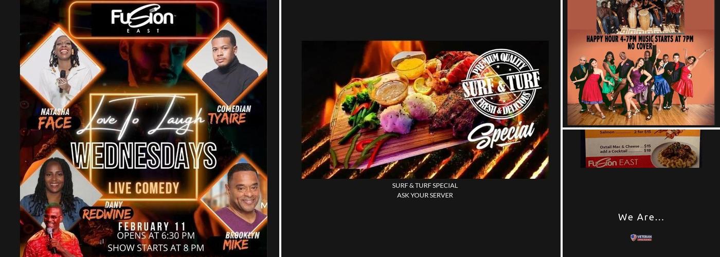 Great food, music, & customer service. In addition, clean & beautiful decor throughout the restaurant. Fusion East BK is only a few blocks from my job, which allows me to pay for lunch at a great price. 💙Zphi100