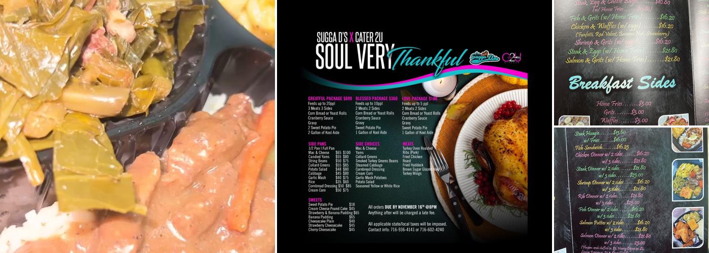 SuggaDs offers the best fish tacos in town, along with a delicious fish dinner. The honey Cajun fish, baked macaroni and cheese, and baked beans are highly recommended. Customers enjoy the sides like Mac n cheese and yams. The overall experience is pleasant with a friendly environment and accommodating owner. The fried shrimp is tasty, and they even offer Kool-Aid. The food is fresh, hot, and absolutely delicious. The customer service is excellent, and they take care of their customers. The collard greens are perfect, the mac and cheese makes even picky customers happy, and the fried chicken is exceptional. The restaurant is known for its fresh and flavorful dishes, with the fish tacos and honey Cajun fish being standout menu items. Customers praise the friendly staff and cozy atmosphere, making it a popular spot for both quick bites and full-course meals.