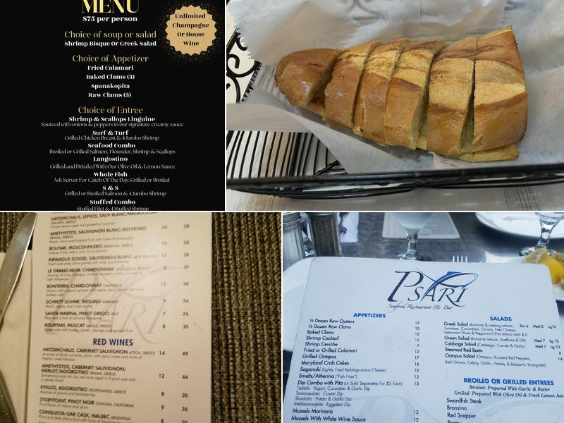 Psari is a popular restaurant known for its fresh seafood and fish, cooked to perfection. The service is top-notch and excellent, with friendly and welcoming staff who make every visit enjoyable. The menu offers a range of options, including great appetizers and drinks, with a varied menu that has something for everyone. Highlights include the oyster bay little neck clams and mussels, as well as the delicious fish dishes, scallops, lobster, crab, and shrimp, all cooked very well. The lemon potato, sangría, and house wine are excellent. Overall, Psari is a great choice for a dinner date, quick lunch, or retirement luncheon, with excellent food and service in a lovely venue.
