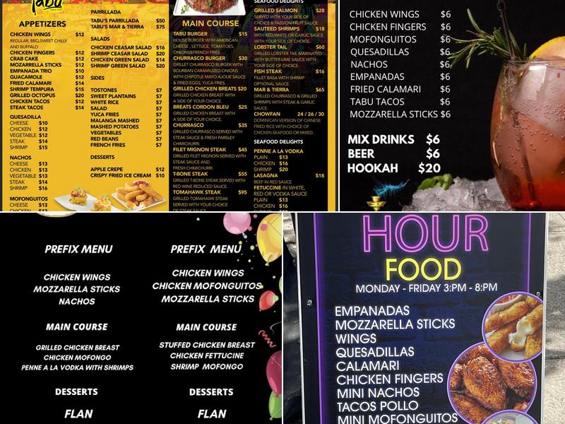 Tabu offers a great ambience and atmosphere, with a nice decor and a hookah spot. The staff is courteous and attentive, and the music playing in the background sets a lively tone. The food is also great, with reviewers praising the happy hour nachos, nachos, wings, and calamari. The frozen mango margaritas are a highlight, and the prices are reasonable. Customers describe the restaurant as a wonderful experience, with unbelievably friendly staff, exceptional drinks, and delicious food such as the chowfan with chicken and Henny colada. The ambiance is very welcoming and charming, making it a great spot to bring friends and family.