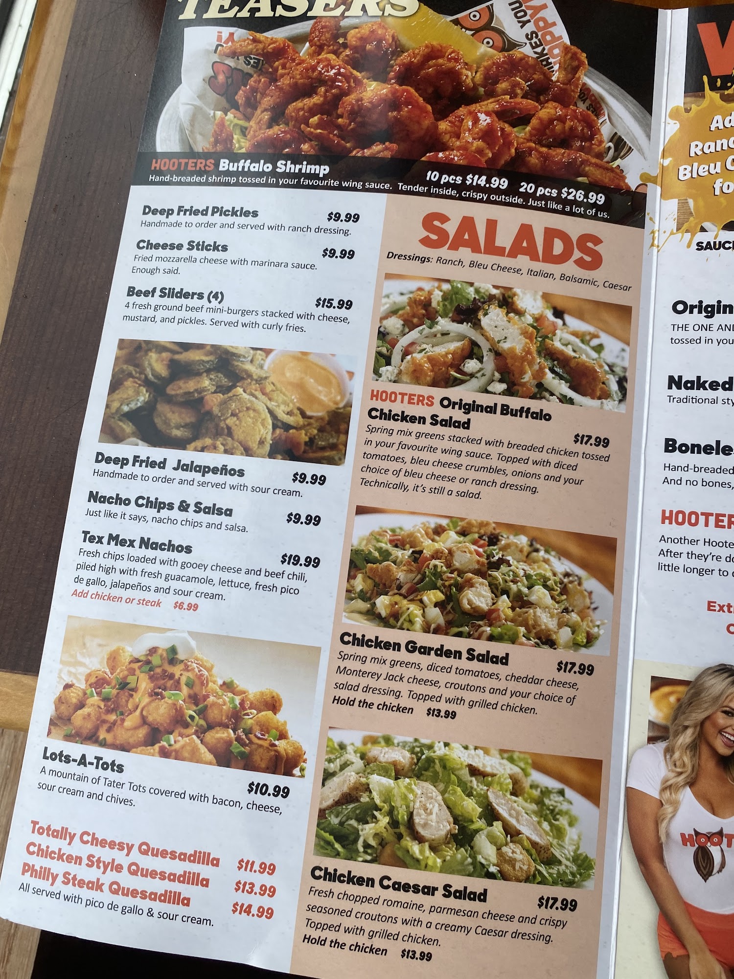Well, what I can say about Hooters, you go for service for sure BUT I was really surprised with food too, I was having a voucher for unlimited wings for 6 people( one hour only)and we make girls work for it! Our server was on point every single time with suggestions and tell us how much time we have left! Actually, I can wait to go back again for complete experience