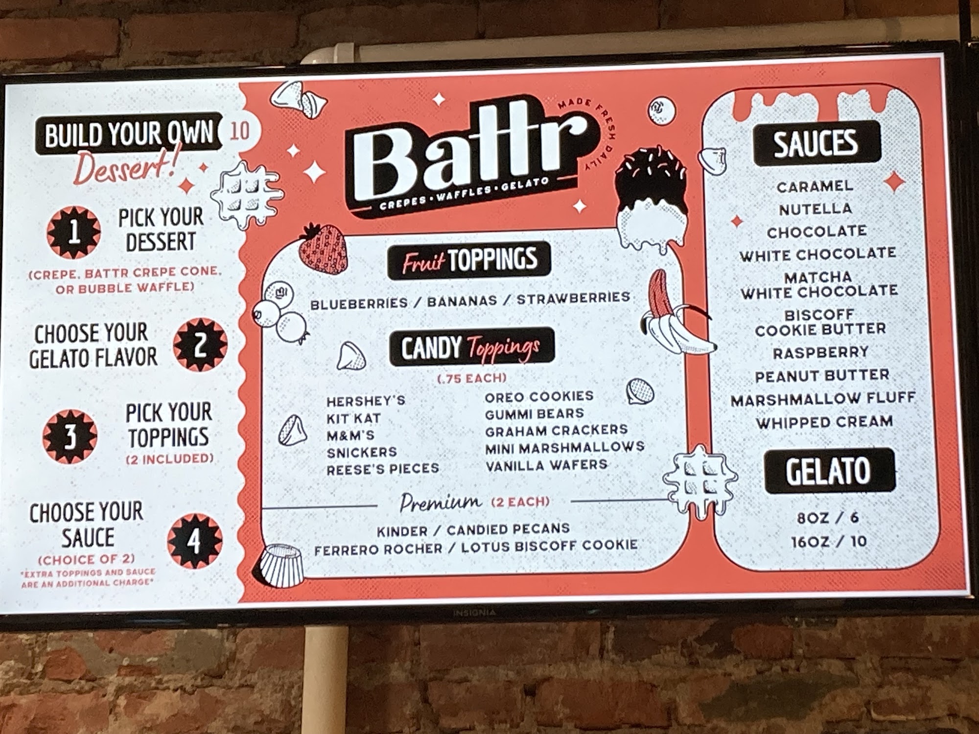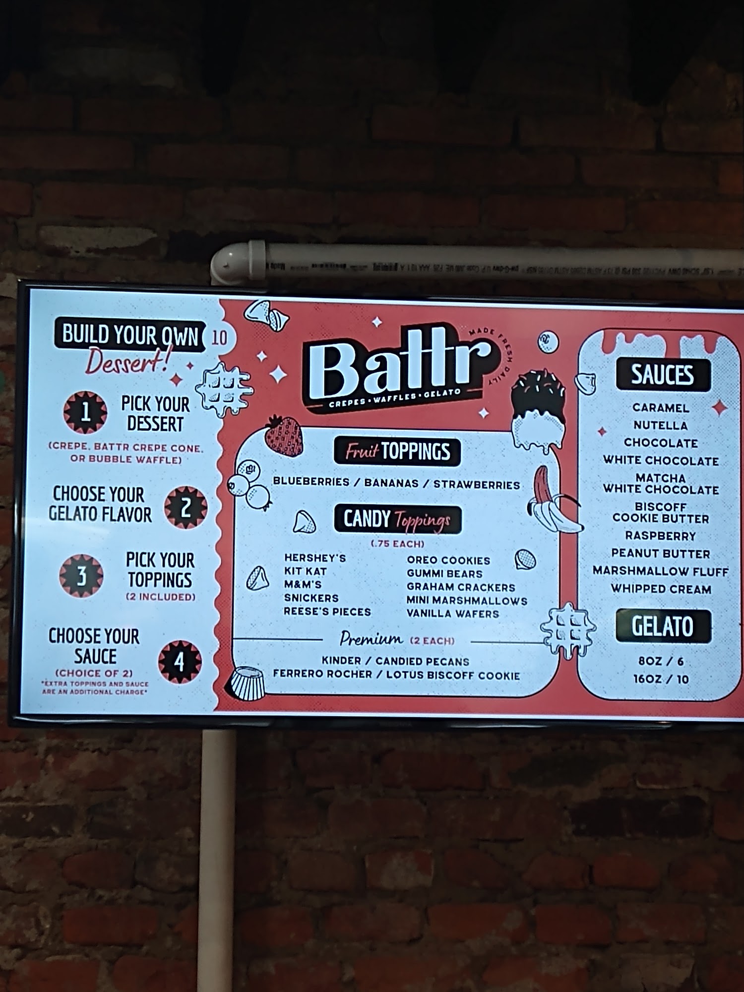 Battr is part of our stops everytime we journey to Tremont. We like walking through Tremont and hitting up some of the night scene and always end up at Battr. The food is absolutely amazing and the staff was extremely helpful. We got a bubble waffle with Cookie Butter Gelato and some marshmallow topping. Was absolutely to die for