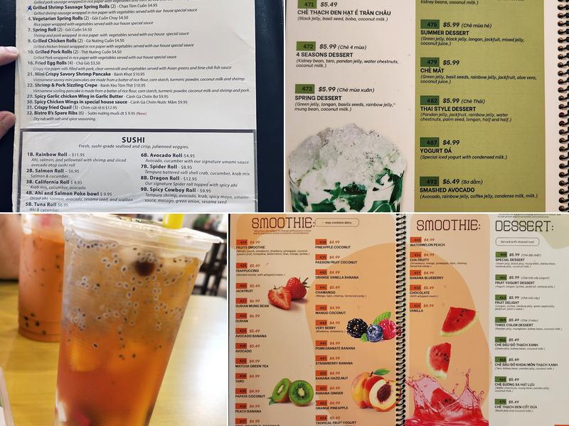 Bistro B offers a varied menu with delicious dishes, including eggroll, chicken vermicelli, bibimbap, seafood pho, fried quail appetizer, fillet mignon with shanghai noodle stir fry, and general tso's chicken. The restaurant also provides vegetarian fried rice, a wide range of soups, appetizers, platters, and giant stews. The portions are generous, and while the prices may be a bit higher than average, the restaurant caters to everyone's preferences.