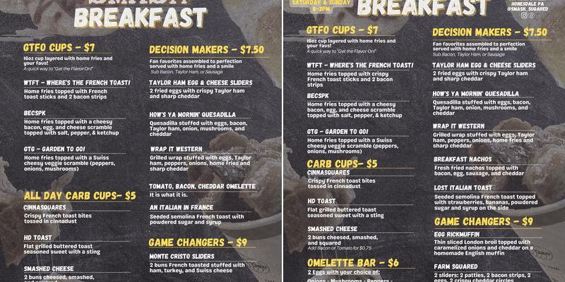 Smash Squared is a restaurant known for its delicious sliders, flavorful fries, and delightful sauces. The toasted buns and pumpkin snap cookie are particular highlights. Its kid-friendly atmosphere and excellent coffee, including the Nutella iced latte, make it a great spot for families and individuals alike. The smash burger sliders, named Krabby Patty and Sweet Baby Hops, are highly recommended.