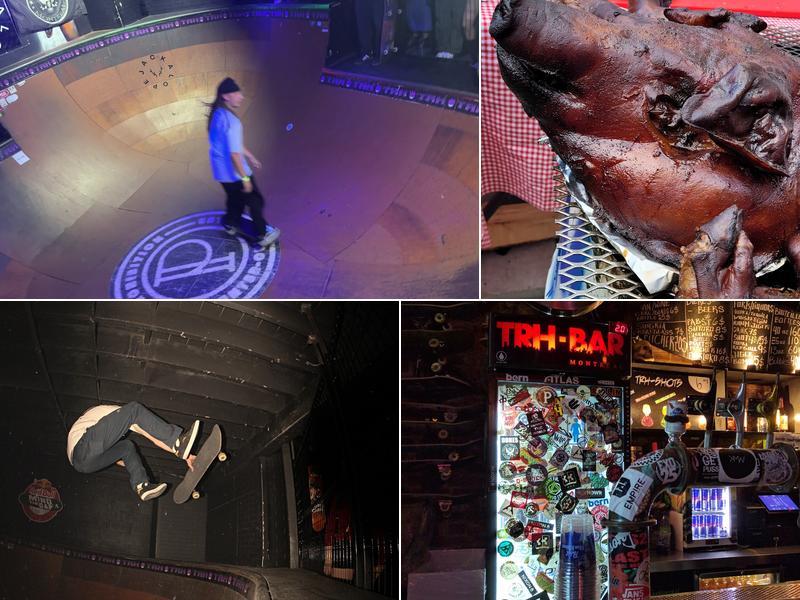 TRH is a unique and fun bar with a cool layout in Montreal. It offers a lively atmosphere with great music, a dance floor, a Skate bowl to watch, and a patio for breaks. The vibe is more relaxed and masculine, making it a good spot to hang out with friends. The service is good, and the art adds to its charm. It’s a fun place for a night out, especially if you enjoy skating or a chill environment.