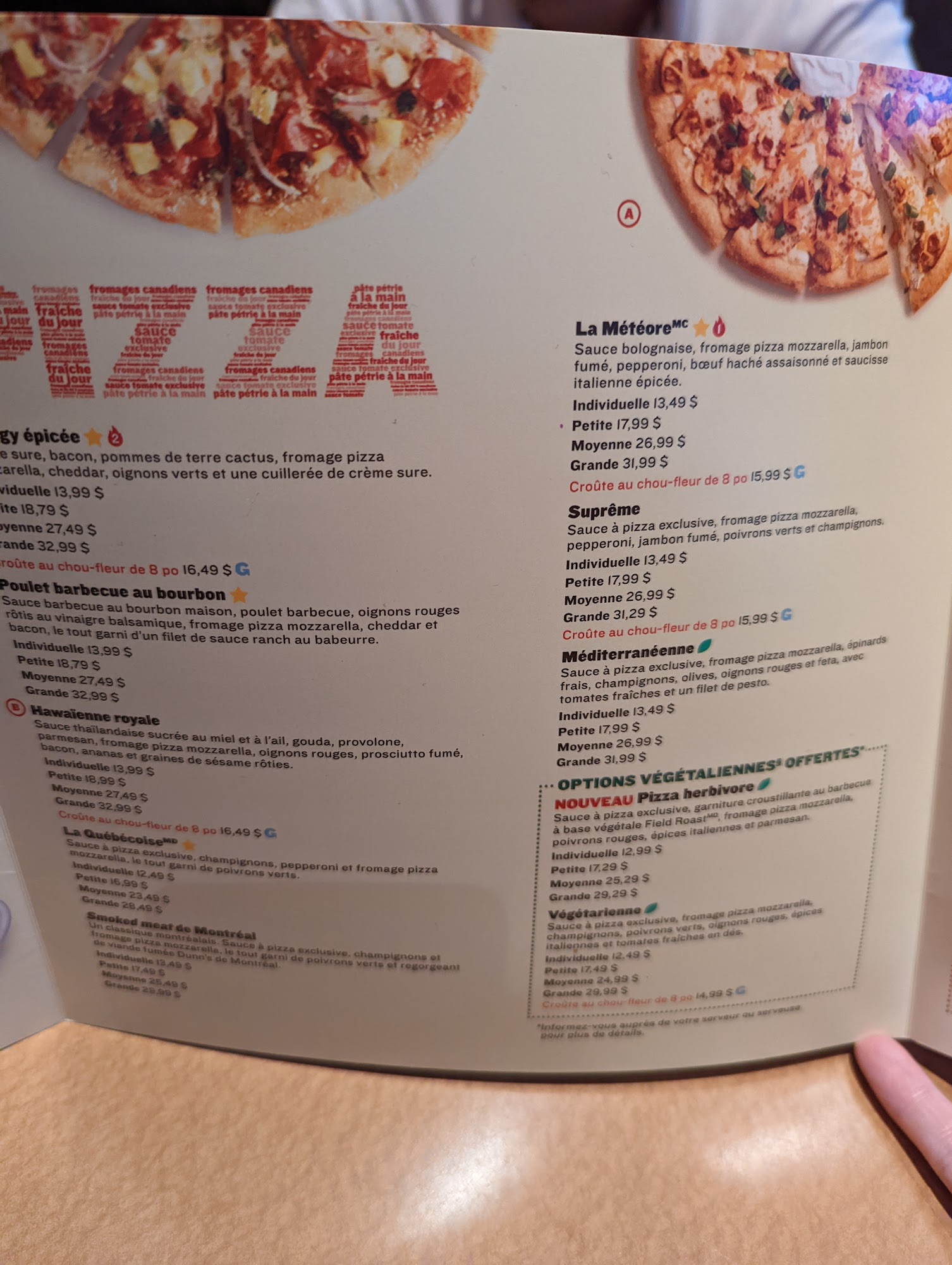 Le format parfait pour les grands appétits. Garnie de sauce, de fromage pizza mozzarella et de deux garnitures au choix. / The perfect size for a hungry kid. Pizza sauce, pizza mozzarella, and any two toppings you want.