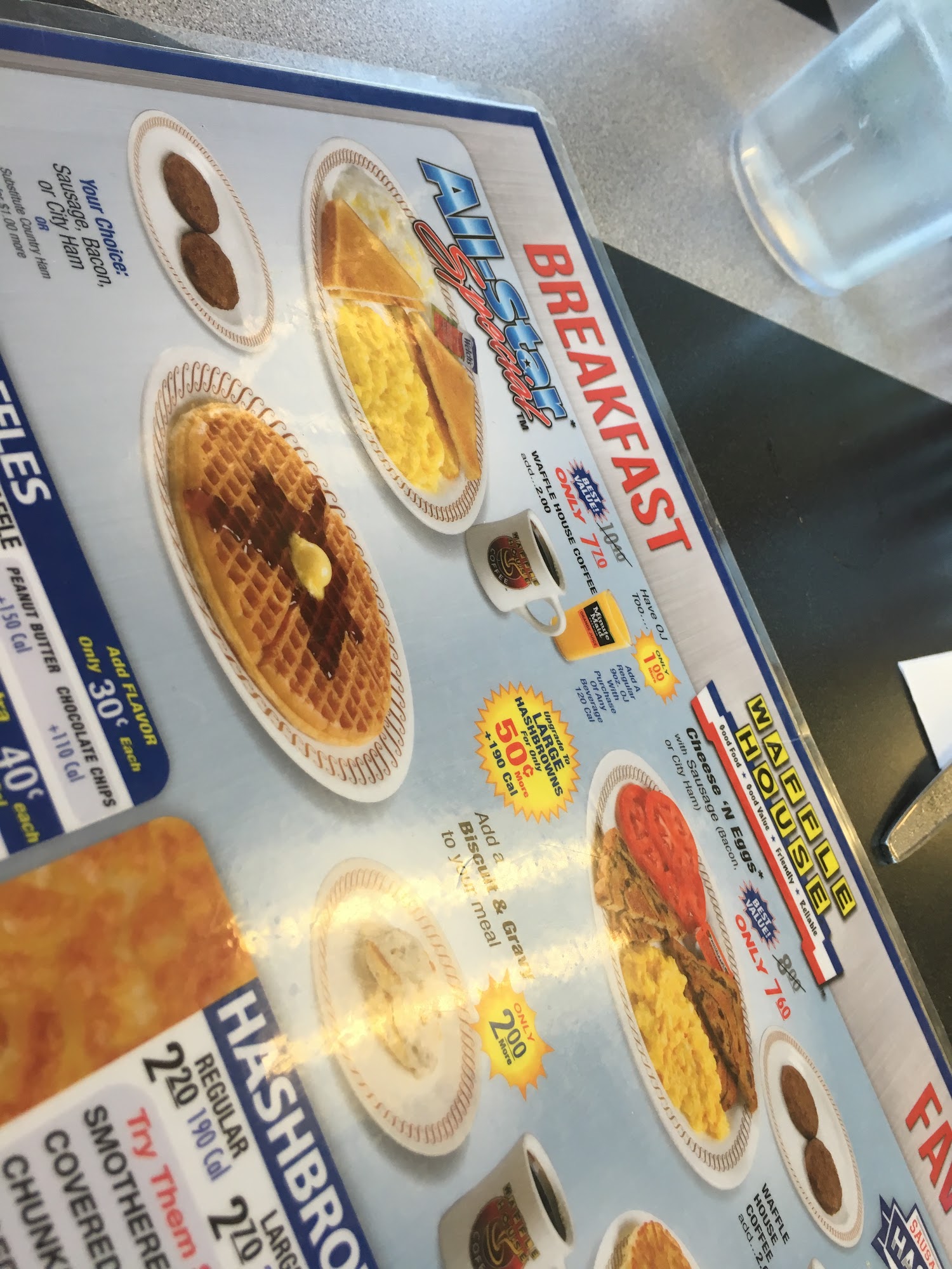 We enjoyed our stop here at Waffle House. The restaurant was clean. The service was fast. The food was delicious. I love their coffee. I wish they sold it in stores.
