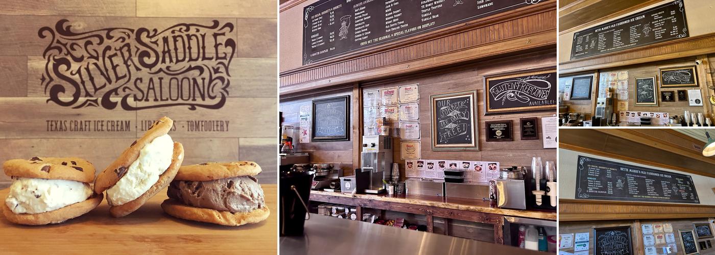 The Silver Saddle Saloon is a popular spot in Granbury that offers a fun and lively atmosphere for both adults and children. This charming establishment features a bar in the back and an ice cream parlor in the front, allowing visitors to enjoy either or both. The menu includes over 60 ice cream flavors, such as lavender honey and banana ice cream, with the ice cream considered some of the best around, surpassing well-known brands like Blue Bell and Ben & Jerry's. The staff is friendly and attentive, although some customers have noted that the service at the front can be lacking in enthusiasm. Guests can also enjoy live entertainment, including live music, and a lively crowd. The venue is a great place to hang out for a night out or a family-friendly treat. Special events like "Yappy Hour," where guests can bring their pets, and an annual Friendsgiving that collects toy donations for Toys for Tots, add to the fun. The atmosphere is relaxed, with options to sit inside or outside on the patio, which is mostly wheelchair accessible despite one step to navigate. Kids are welcome in most areas, and the staff takes dietary restrictions seriously, offering options like sorbet and careful sanitation for allergies. While some find the food to be good but nothing special, the chicken panini with Chipotle mayo received praise for its sauce, and the ice cream remains a highlight. Overall, the atmosphere, drinks, and delicious homemade ice cream make it a fun place to spend time with friends or family.