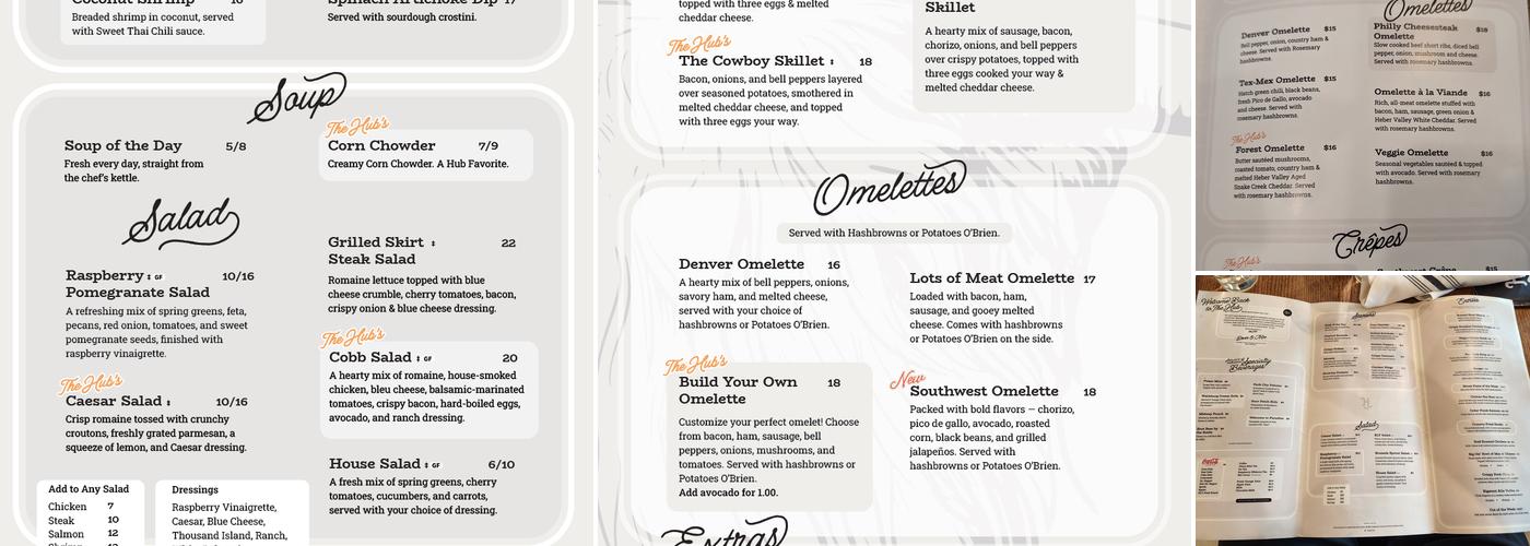 The Hub Cafe is a popular restaurant that often welcomes families and campers, especially after trips to Vernal or Moonlake. The cafe offers a variety of dishes, including a salad with bacon, though some customers have reported issues with the chicken being gristly and the bacon being undercooked. The restaurant's homemade strawberry jam remains a favorite among visitors, and the staff have gone out of their way to prepare meals for late arrivals. Recently, the restaurant has been beautifully renovated, giving it a fresh, updated look, and the new menu has been well-received. Customers praise the attention to detail and the cleanliness of the establishment. The staff are known for their professional and friendly service, often checking on guests throughout their meals. Many have complimented the food's quality and the generous portions, especially the big biscuits and gravy. The owner, Mo, has been praised for his hospitality and dedication to keeping food fresh with daily deliveries. The Hub Cafe continues to be a place where guests enjoy great food, friendly service, and a welcoming atmosphere.