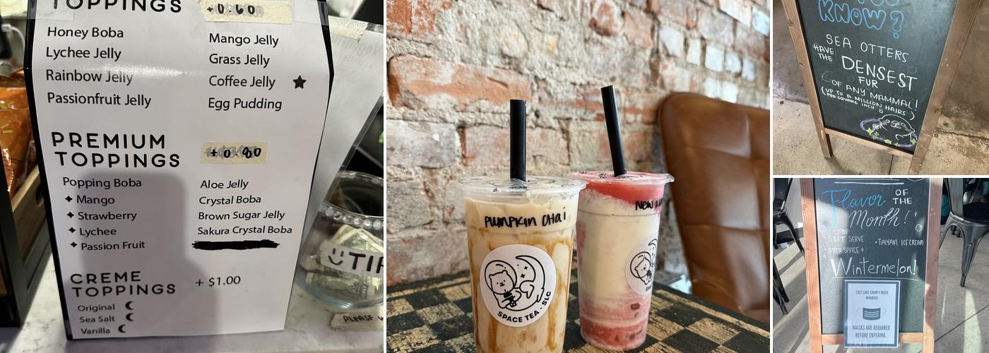 Space Tea is a welcoming spot with kind staff, like Joseph, who provide fast service and attention to detail. The clean, game-filled atmosphere creates a fun and relaxing environment to enjoy a drink, with non-dairy options available. Customers love the space cat theme, which adds to the adorable ambiance. The shop serves the best boba in town, and many appreciate the excellent vibes and community spirit. The Milky Way is highly recommended, especially when served cold, though some found it was better when freshly cooked. The owner and staff, including Keera and Indigo, are attentive and go above and beyond to ensure a good experience, even making up for previous issues. Additionally, the trending mango sticky rice is a hit and worth trying.