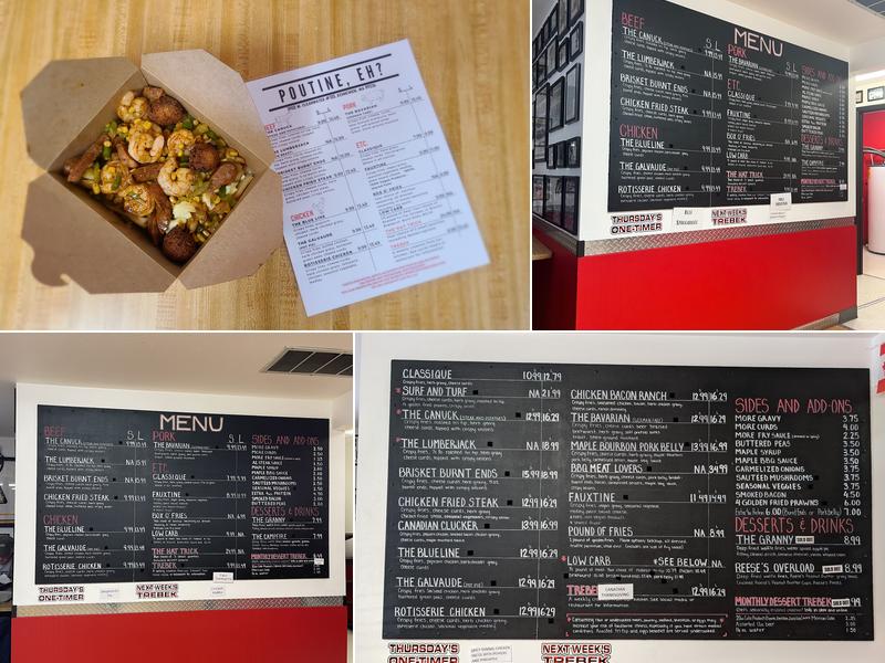 Poutine, Eh? is a cozy restaurant that offers a delightful poutine experience. The menu features a variety of tempting options, including the classic poutine and the Peruvian cheesesteak, a weekly special, both boasting a mouthwatering combination of soft cheese, warm gravy, and crispy fries. The "Veg Head" poutine, with its flavorful vegan gravy and wonderful curds, is a must-try for vegetarians. The extensive menu also includes the rotisserie chicken, tri-tip, and brisket burnt ends, served with maple BBQ sauce, catering to a wide range of tastes.