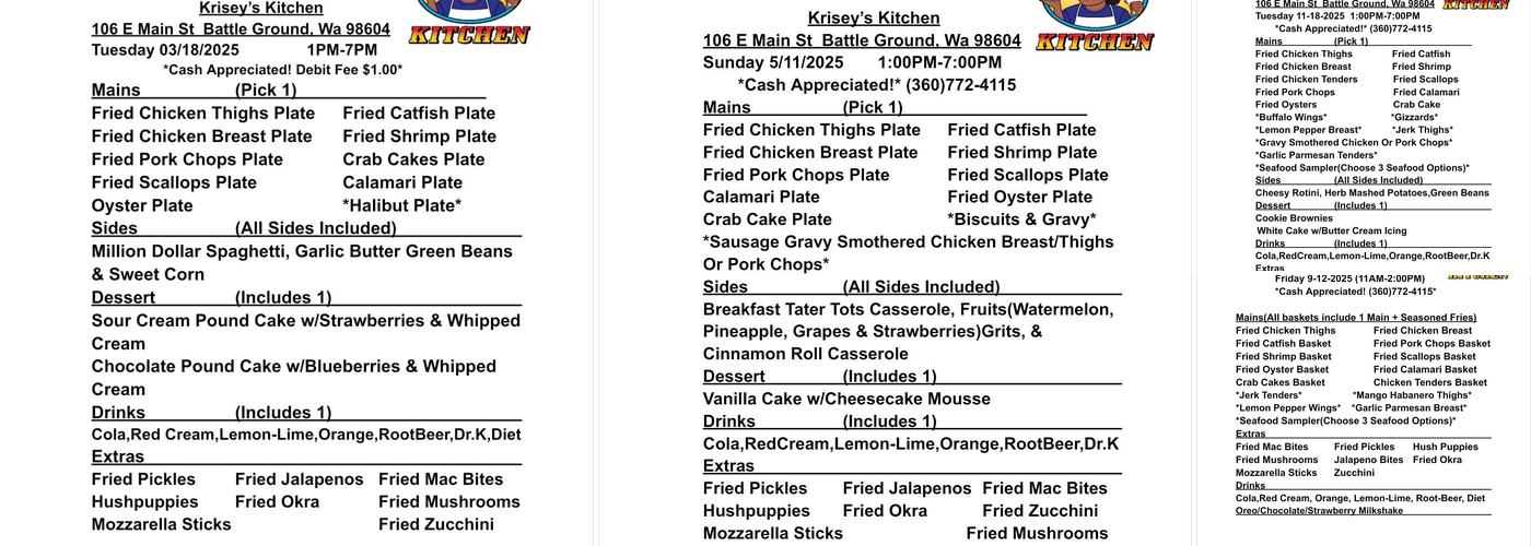 Krisey's Kitchen is a popular restaurant known for its delicious food and excellent service. This food truck is a national treasure. The restaurant offers a variety of dishes, including generous portions of BBQ plates, fried chicken, and comfort food favorites like mac and cheese and sweet potato salad. The portions are massive and insanely delicious. Desserts like deep-fried Oreos and pecan sheet cake are also popular. The cakes were moist and rich without being overly sweet and the gouda lasagna was fantastic. The atmosphere is welcoming, with friendly staff who provide a warm hospitality. Customers have praised the large portions, affordable prices, and the kindness and efficiency of the staff. The menu features both classic Southern-style dishes and unexpected twists, such as the ravioli casserole, all of which are praised for their exceptional taste and quality. Whether you're craving fried catfish, fried okra, or a hearty, comforting meal, Krisey's Kitchen is a must-visit destination that delivers a satisfying dining experience.